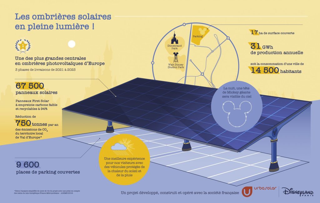 “This power plant is an unprecedent project in Europe from a major company like Disneyland Paris,” said Stéphanie Andrieu, CEO of Urbasolar, and Arnaud Mine, President of Urbasolar. “It will be a fully tailor-made project, integrated into Urbasolar’s strategy of innovation on system monitoring and on-site energy management. We are thrilled to be part of this project.”
