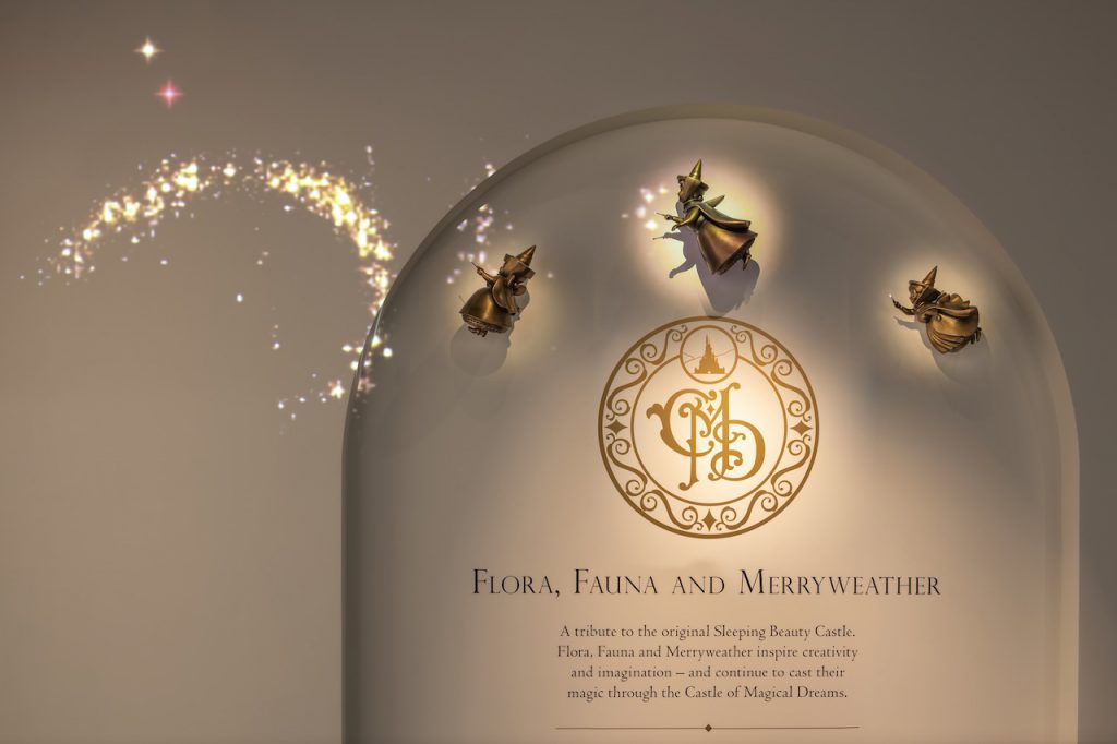 Originally for some years, Hong Kong Disneyland had a similar clone copy of Sleeping Beauty’s castle of the original at the Disneyland Resort in Anaheim, California and now the new redesigned castle pays homage to “the original” Sleeping Beauty Castle, Flora, Fauna, and Merriweather can now be seen spreading fairy dust across the castle’s breezeway, casting light into the chandeliers, and leading the way to a new rotunda featuring 9,000 points of dancing light.