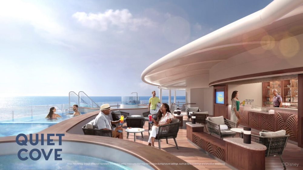 Where a lot of the leisure and water activities happen on the top deck for Disney Cruise Line as the Disney Wish is going to be completely different versus their other ships. Walt Disney Imagineering will be taking Disney fun “to the next level” for the plans they have in store. Three districts will be on the Top Deck of the ship with the AquaMouse, Toy Story Splash Zone and an adult lounge area.