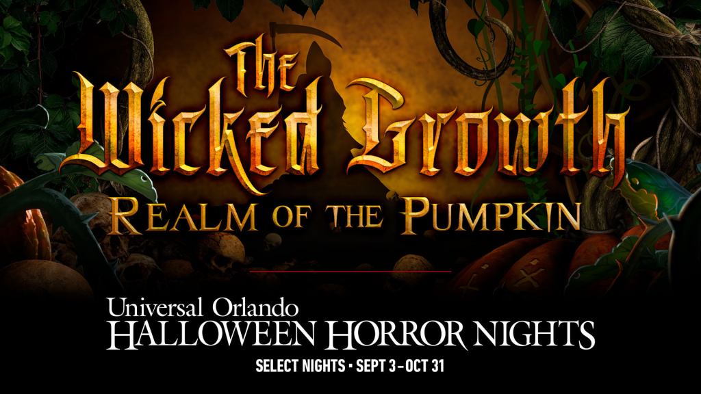 The Wicked Growth: Realm of the Pumpkin: A tradition for HHN in which a evil root has overtaken the land. The rise of the Pumpkin Lord who grows Halloween like a malignant vine. His minions are scouring the countryside, collecting unwilling sacrifices in order to summon the Pumpkin Lord. As this house is inspired from the beloved holiday of Halloween, in which the pumpkins grow ever bigger, your fear grows ever greater, and your odds of escape grow smaller. From the cemetery to the forest, there’s no breaking free from the tenacious vines of the merciless Pumpkin Lord.