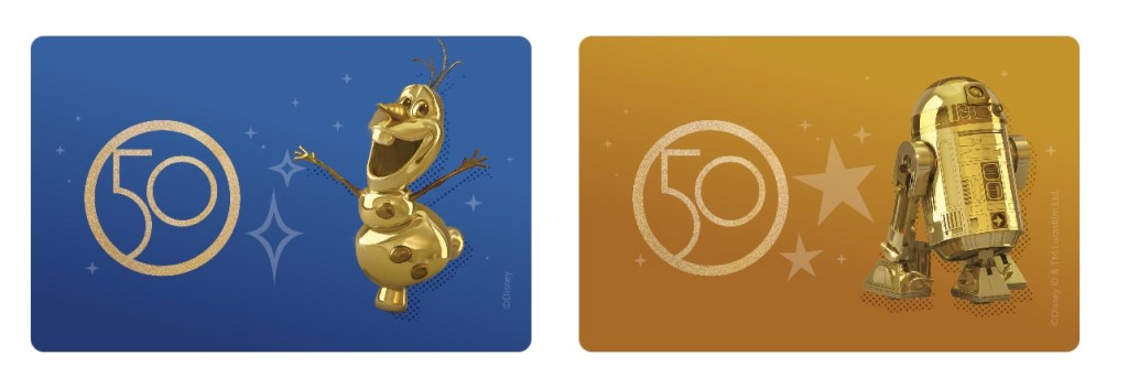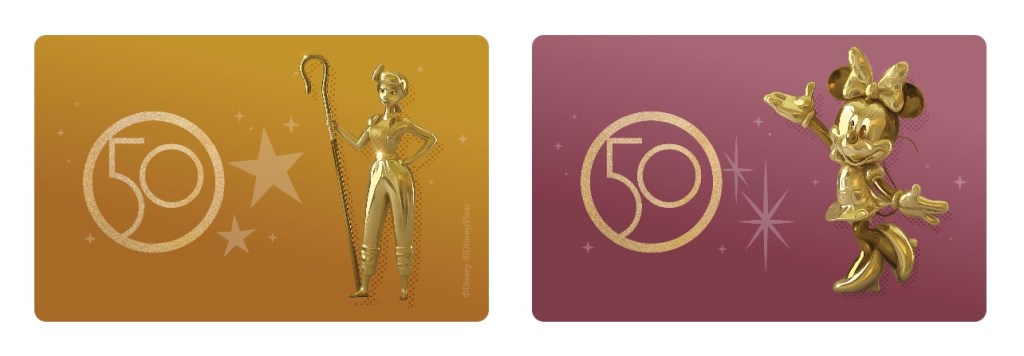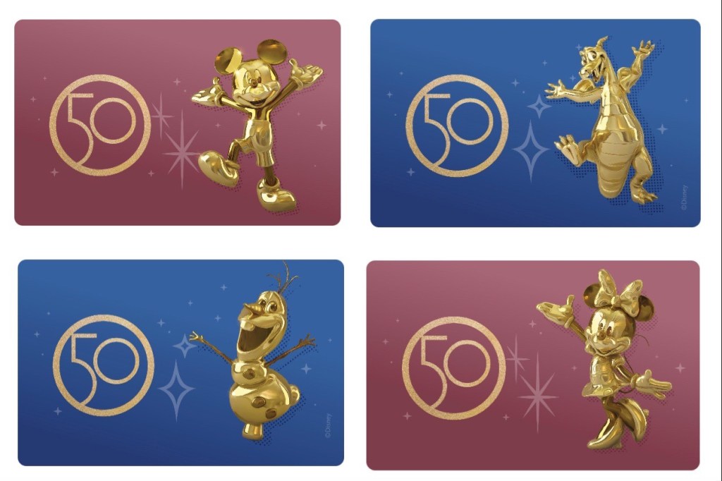 On the eve of Walt Disney World’s 50th anniversary as Disney has added ten new MagicMobile digital card designs towards the Walt Disney World app. The designs feature the “Fab 50 character” sculpture series statues throughout the four theme parks. The digital cards match the new physical cards when guests visit the 18-month celebration. Here’s what they will look like!