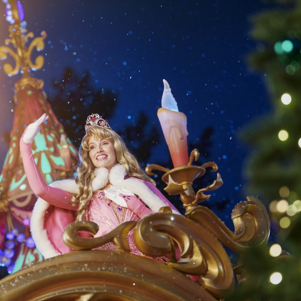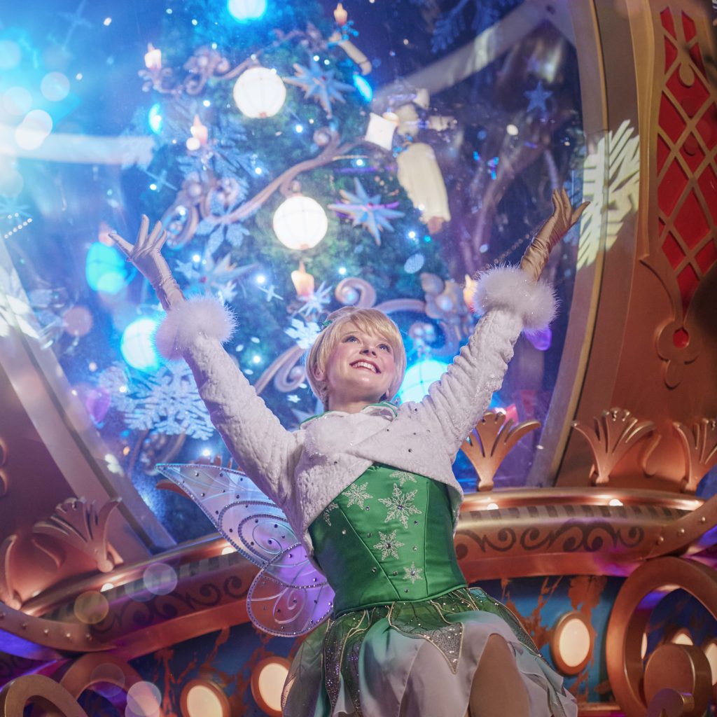 The parade is composed of five gigantic floats, featuring not only Mickey and his friends, but also Disney Princesses and Santa Claus, accompanied by Tinkerbell. Each of these floats will represent an idyllic Christmas scene with traditional decorations and parade performers will be dressed in luminous costumes specially designed for the occasion.